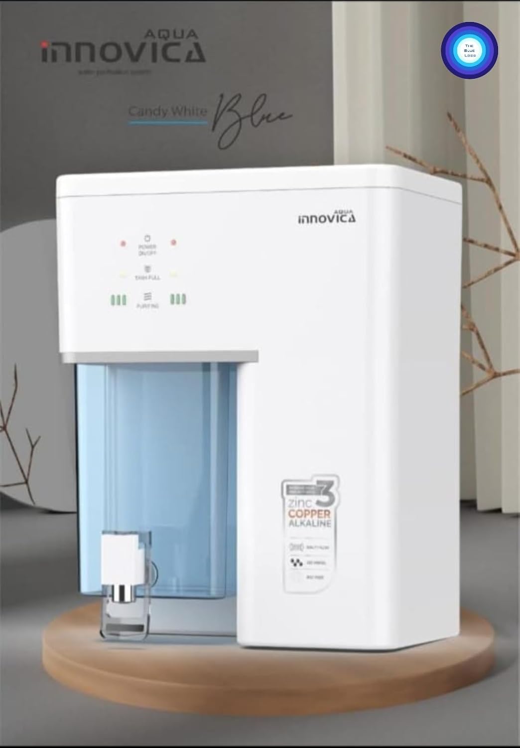 Smart Indicators: LED display panel shows Power On, Purification status, and Tank Full details.