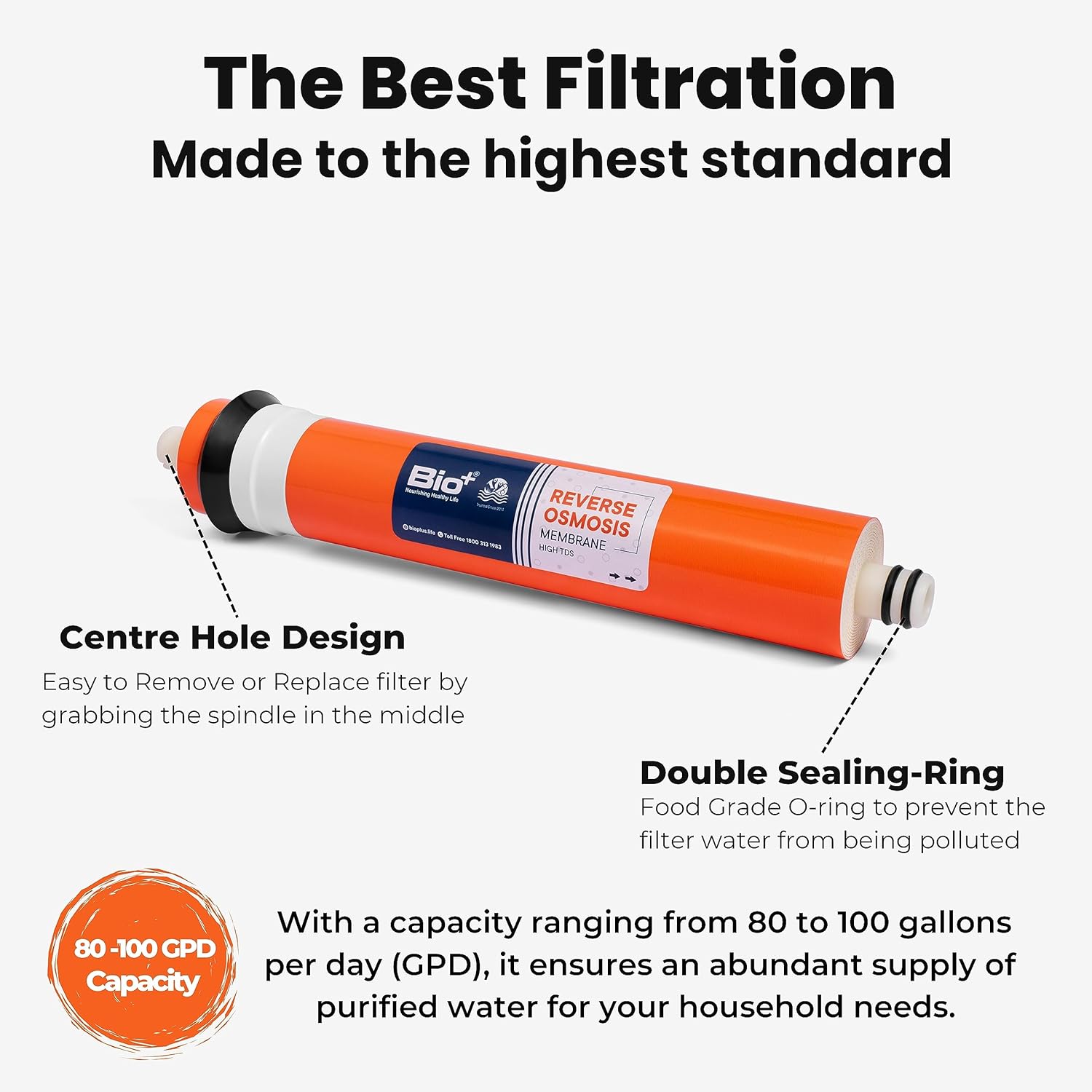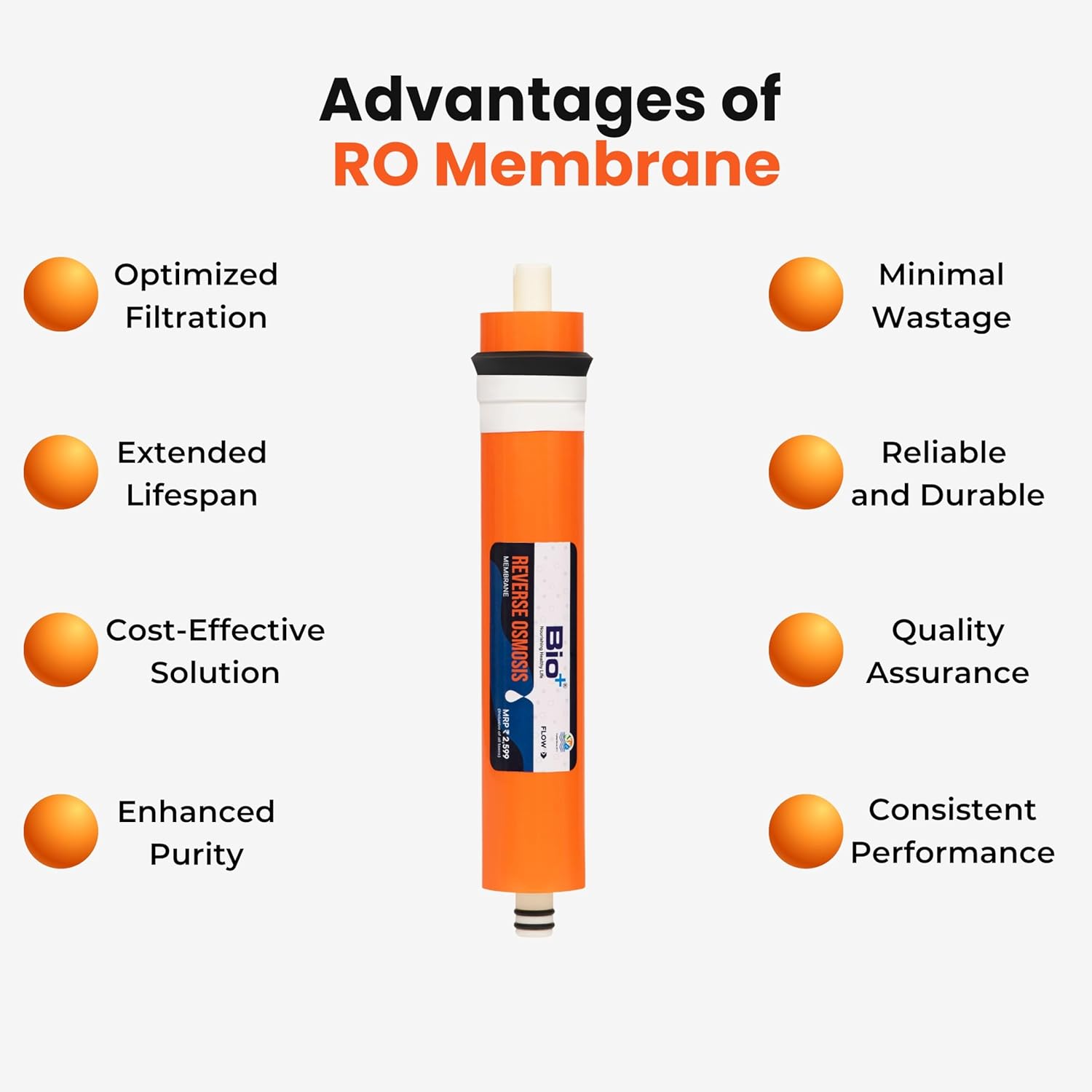 & Free ShippingThe Bio+ Reverse Osmosis Membrane Cartridge is engineered to meet the highest standards of water filtration, providing a safe, abundant, and consistent supply of pure drinking water for all your household needs.
