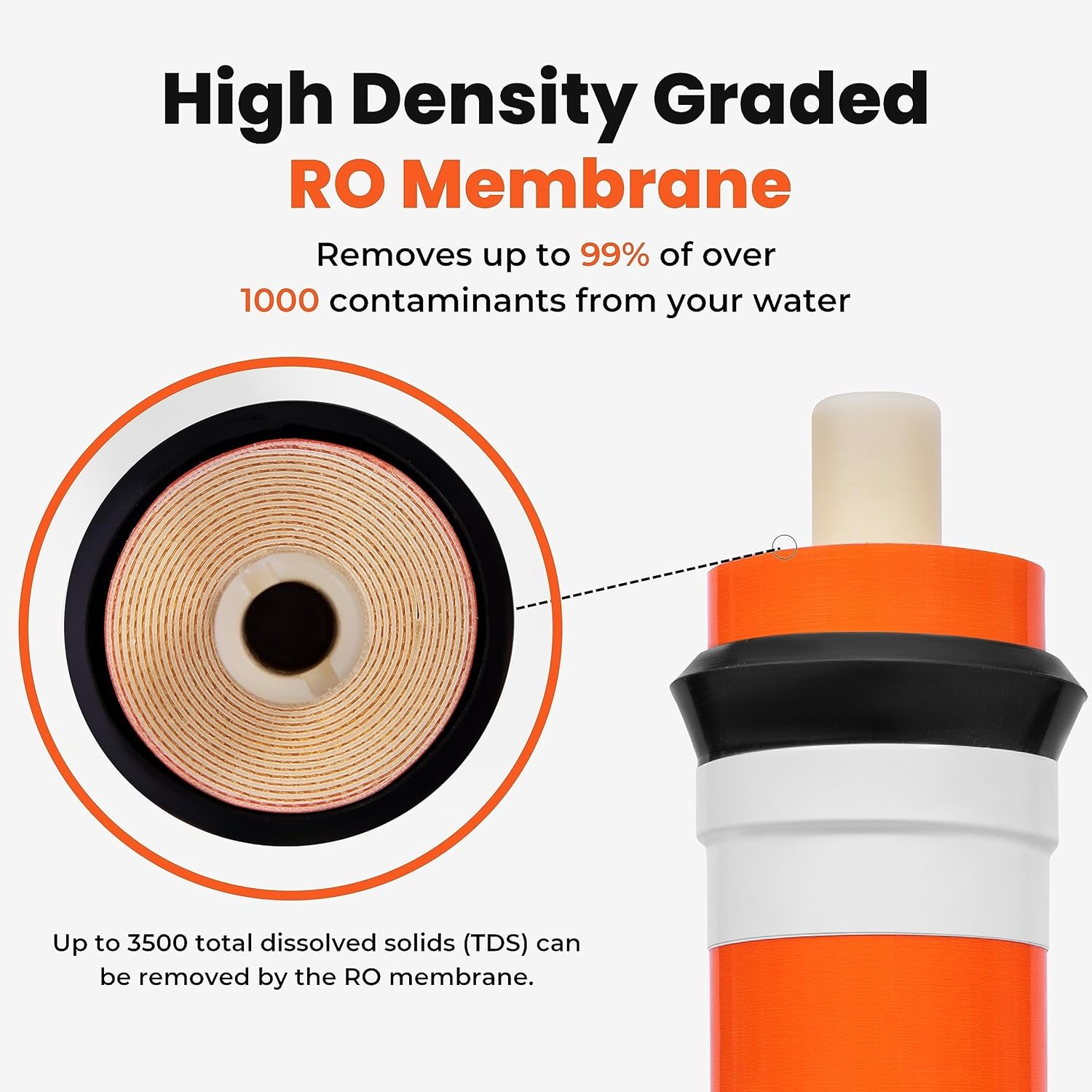 RO Membrane Cartridge | 80-100 GPD Capacity | 3500 TDS Removal | High-Performance Water Filter | Orange